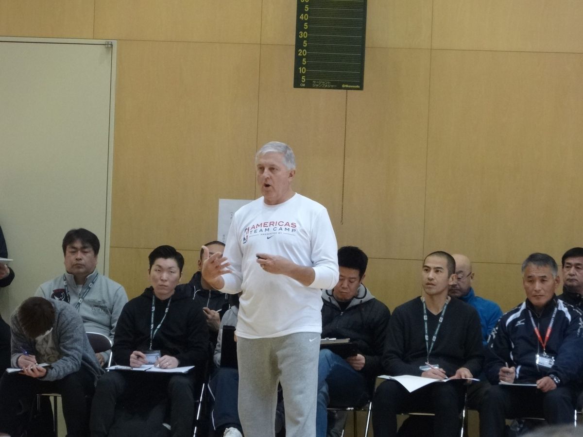 写真=日本バスケットボール協会 JBAは平成29年度第2回全国バスケットボールコーチクリニックを12月16~17日、東洋大総合スポーツセンターほかで実施。2日間で延べ約500名の参加する規模の大きな研修となった。 第2回はアメリカU16&17ヘッドコーチなども務めるドン・ショウアルター氏が2日間にわたって指導。ハーフコートオフェンスやディフェンスをはじめ、同氏が得意とする“ボールスクリーン コンティニュイティー オフェンス”やトランジションディフェンスなど、個人スキルからチーム練習までを網羅した内容だった。同氏は育成年代のコーチング経験が豊富なことから、育成年代に必要な技術・戦術の内容、コーチングフィロソフィーを紹介した。 練習内容は目新しいものではなかったが、最近のバスケットボール事情に合わせた部分をクローズアップすることで、ポイントがより明確になり、すぐに実践できることも多かったに違いない。 「毎日練習する必要なものは、“フットワーク”“パッシング&キャッチング”“シューティング”の3つ」と、ショウアルター氏。また、練習は1つスキルだけでなく、複合的な“マルチスキル”を練習すべきだと、いくつかのスキルを同時に行う練習を紹介。さらに、コーチとしての心構えなど、同氏の豊富な経験も踏まえて話をした。 このJBAコーチクリニックは、JBAコーチライセンス取得者のリフレッシュ研修と、日本体育協会公認スポーツ指導者資格更新のための義務研修の1つとなっている。 (月刊バスケットボール)