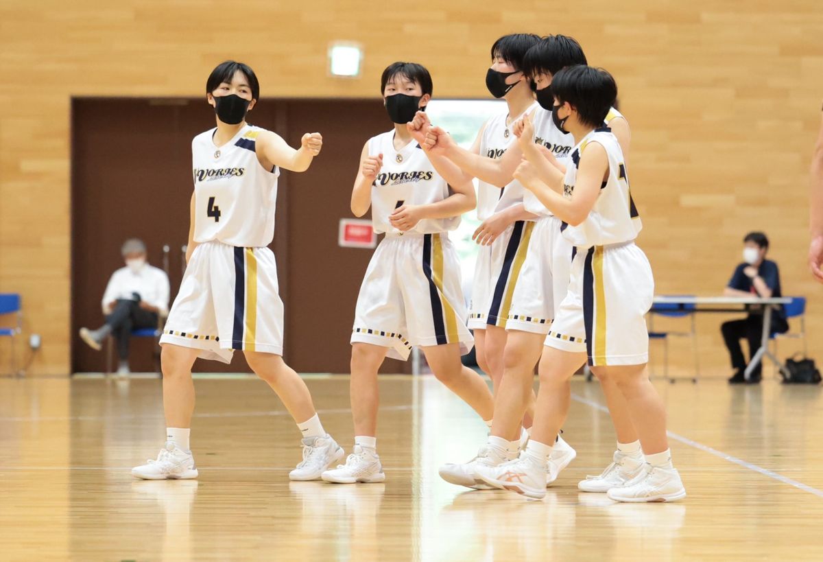 しかし、第3Q中盤に差し掛かった辺りからムードが一変。「リバウンド取れ始めて、相手もシュートが落ちてきました。相手のシュートセレクションは(どう来るか)ほぼ決まっていたので、徐々に選手が対応してくれたと思います。リバウンドが取れるようになればうちに流れがくるので」と、金村厨コーチが振り返るように、下級生が主軸となる大阪体大浪商に対して、オールコートのプレスやダブルチームなどを駆使してタフショットを打たせ、攻めては#8山内愛音を起点に、インサイドで#9筑田愛音や#7山下夏凜 、アウトサイドからは#6加藤乃莉がリズムよく得点し、このクォーターが終わる頃には点差を1点まで縮めることに成功したのだ。