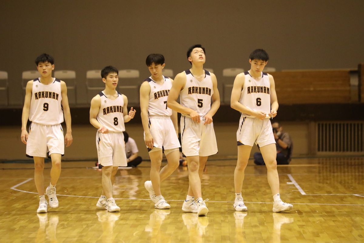 洛南はエースの#5星川開聖を軸に、#4西村渉や#6三浦健一といった身体能力と機動力の高いフロントコートを形成し、バックコートにもクレバーな司令塔#8辻永遠、外角から援護する#9天野幹也らオールラウンドに仕事をこなす5アウトのメンバーで今大会を勝ち上がってきた。