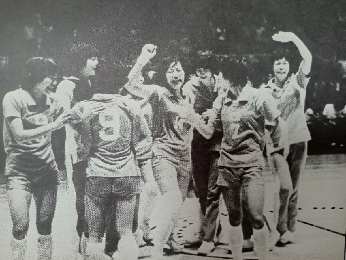 世界選手権2位以上を決めた瞬間、歓喜の女子日本代表(写真/橋本きみ子さん[現姓長井さん]寄贈の資料より)