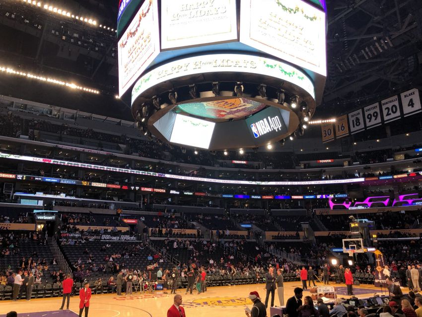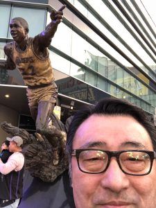 ステイプルズ・センター入口にあるマジック・ジョンソンの銅像 (つづき) 【12月25日】 朝から移動準備に取りかかる。朝食も摂らずにパッキングをしてからレンタカーで空港へ。レンタカーを返却して、すぐにフライトのためのチェックイン。やはり、アメリカはセキュリティーチェックが大変で時間がかかった。 そんな中なかで、私のTシャツに“One Ball One Love”と書かれているのを見た係官が、“お前、バスケットボールをしいてるのか?”と問われる。“Yes”と答えると、ビジネスカードをくれと依頼される。とても印象的だったのかもしれない。面白い係官で、常に踊っているようだった。 フライトは45分、サンフランシスコからあっという間にロサンゼルスに到着。ホテルは空港に取ったためとてもイージーにチェックインでき、レンタカーも借りてステイプルズ・センターへ。昨年の事もあり、駐車場も熟知しているので心配はない。 若干時間がかかったが、無事にロサンゼルス・レイカースのゲームを見る。ウォームアップ前にミネソタ・ティンバーウルブスの吉本さんと会うことができた。彼は現在ウルブスのヘッドコーチ補佐をしている。トム・シボドーヘッドコーチのお気に入りで、常に同行している現状だ。いろいろなことを質問したかったが、仕事が忙しそうなのでやめるが、今後彼の経験は、われわれ日本のバスケットボール界には大きな財産となることだと思われる。その後、ライターの宮地さんとも会い、日頃のごぶさたを解消した感じだった。 ゲームは一昨日の最悪のゲームを考えれば、とっても激しく面白い展開だった。やはり、今シーズンの目玉だと思っていたウルブスが圧勝。ウルブスは7人くらいまではトップチームと良い勝負だと思うが、そのあとの控えが不足。ここのピースが埋まれば相当の成果を発揮すると思われる。