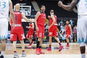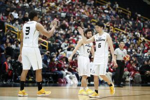 <千葉100‐63京都> 「出だしからタフでアグレッシブなディフェンスをして、自分たちの走るバスケットができた」と試合後にコメントしたのは、千葉ジェッツ#34小野。レギュラーシーズンで3勝1敗と勝ち越している京都ハンナリーズから会心の勝利を得ることができたのはスタートダッシュに成功したからだ。 まず、というか終始、流れをつかんでいたのは千葉。指揮官の大野ヘッドコーチ(HC)が「ディフェンスからトランジションオフェンスにつなげられた」と振り返ったように、守っては“#34スミスにいいポジションを与えない”“3Pシュートをノーマークで打たせない”という試合前の目論見通りに進め、攻めては小野、#11西村、#27石井、#8ライオンズ外角からのシュート、#10チェンバース、#21エドワーズのペイント内へのアタックで着実に加点。前半を終えて50‐27と大きくリードしたことで、勝負は決したと言っていいだろう。 この流れは後半になっても大きく変わることはなく、結局、千葉は100点の大台に乗せての勝利。この時点でまだ決勝の相手は三河と決まっていなかったが、大野HCが「個の力を結集してグループとして戦うことがポイント」と言えば、小野は「チームとしてやりたいことができている」とコメント。天皇杯2連覇に向け弾みをつける勝ち方となった。
