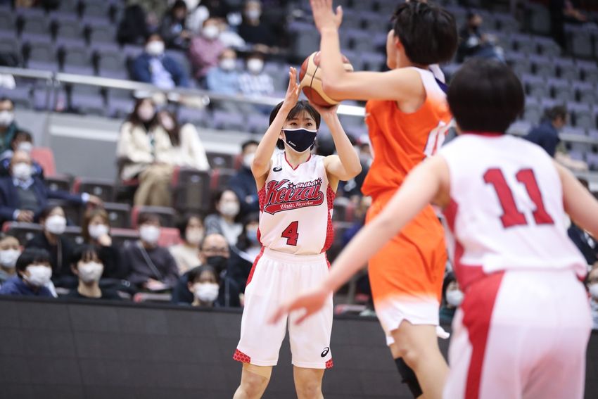 振り返れば、勝負の分岐点は1Qだった。千葉経済大附はインターハイでの経験から「ディフェンスの重要性を再確認しました」と池端コーチ。サイズはないもののディフェンスを頑張る#6藤井友菜を今回スタメンに抜てきし、序盤から攻撃的なディフェンスを仕掛けて市柏の攻撃をシャットアウトする。結局、このQの失点は相手にリバウンドシュートを許した2点のみ。攻めてはエース#4川井田風寧の連続得点や#11角陽菜多のゴール下などで得点を伸ばし、1Qで16−2と大幅リードを奪うことに成功した。