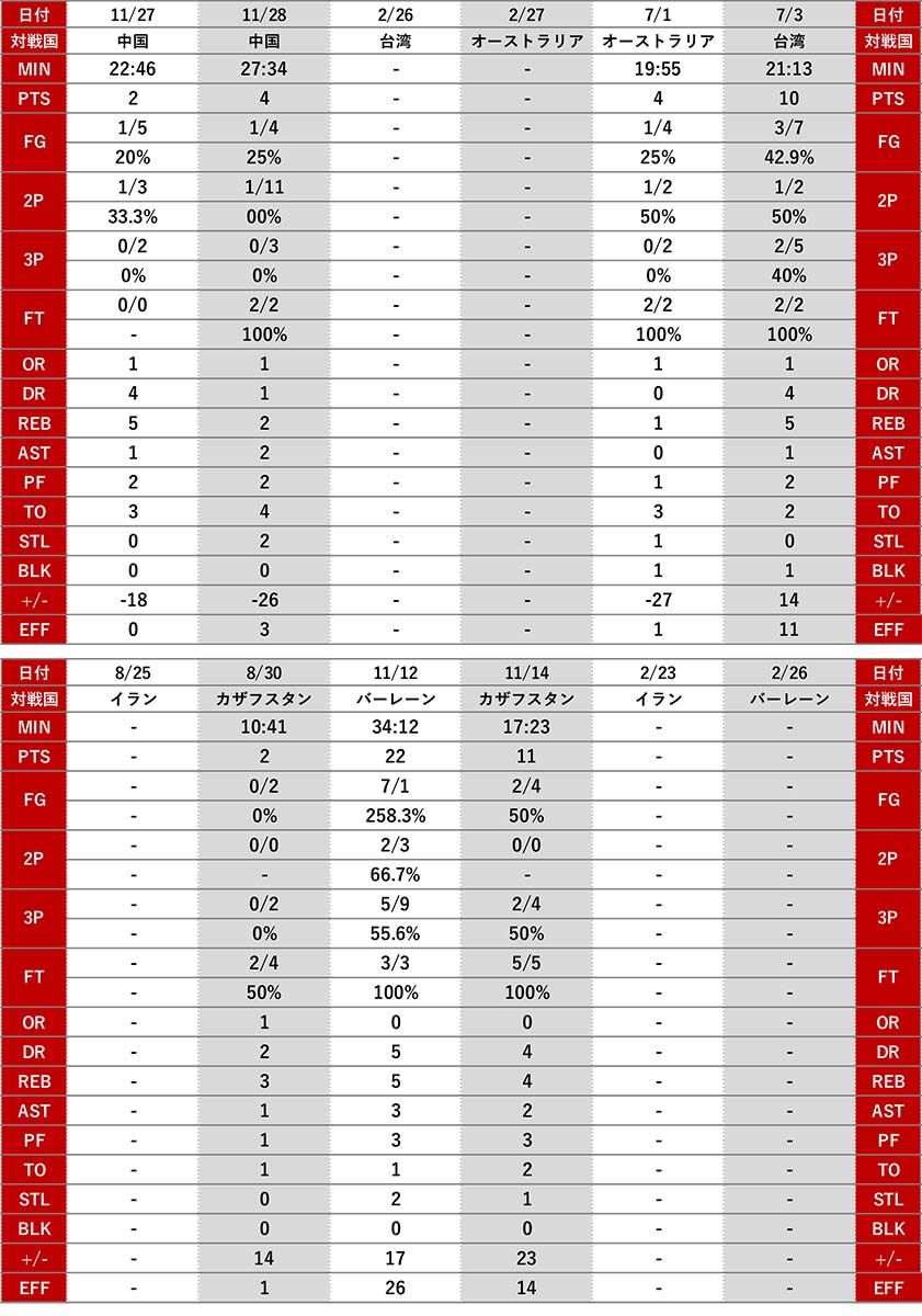 ■FIBAバスケットボールワールドカップ2023 アジア地区予選STATS