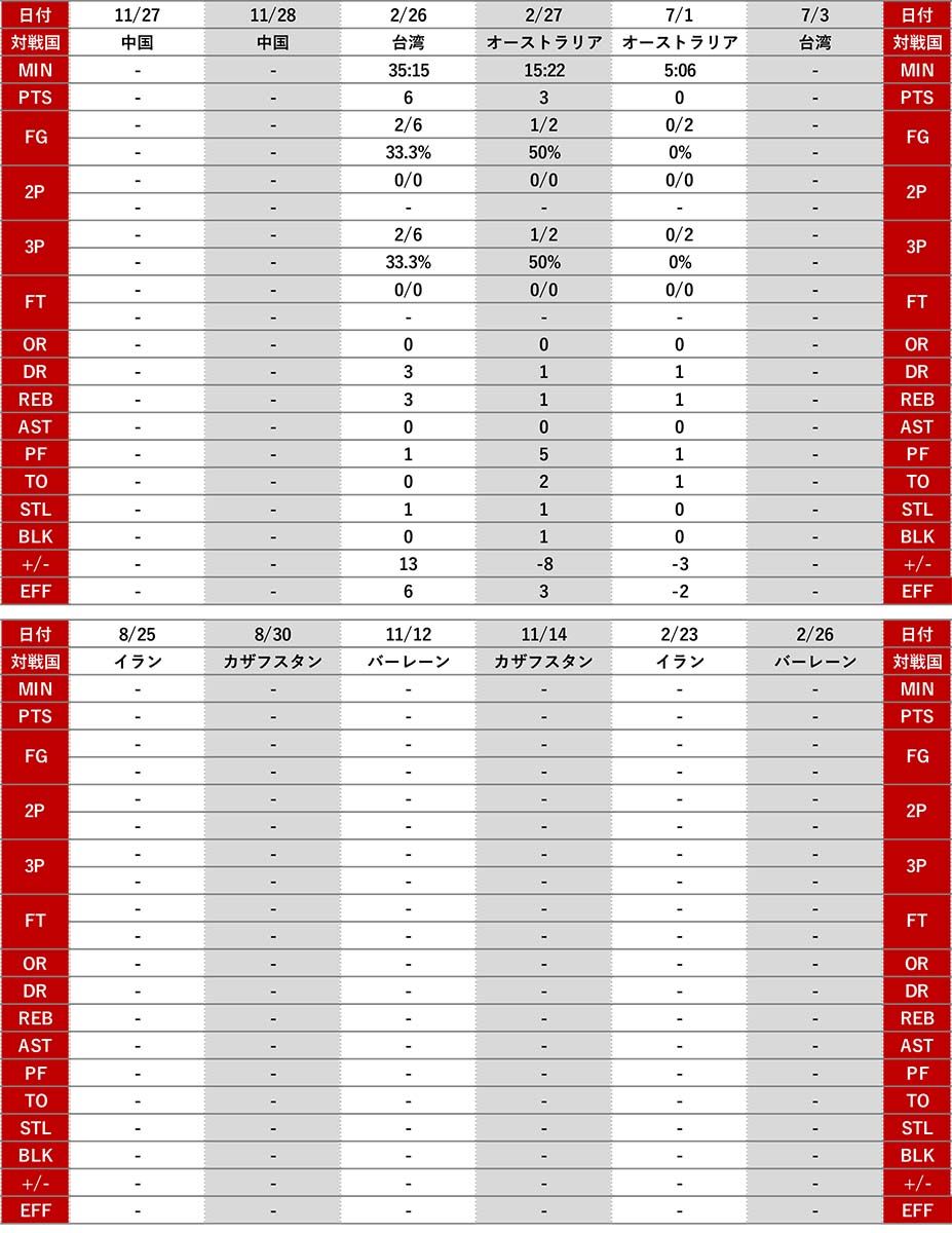 ■FIBAバスケットボールワールドカップ2023 アジア地区予選STATS