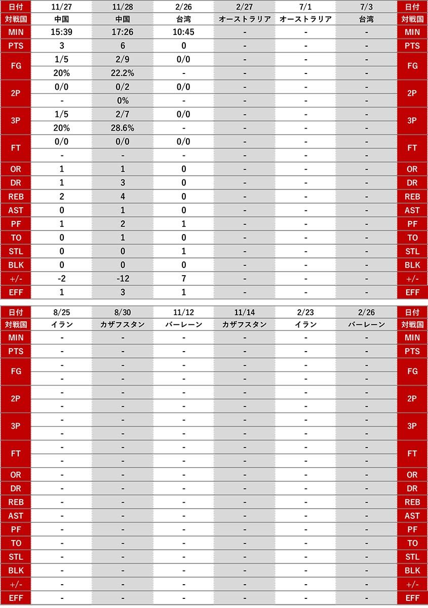 ■FIBAバスケットボールワールドカップ2023 アジア地区予選STATS
