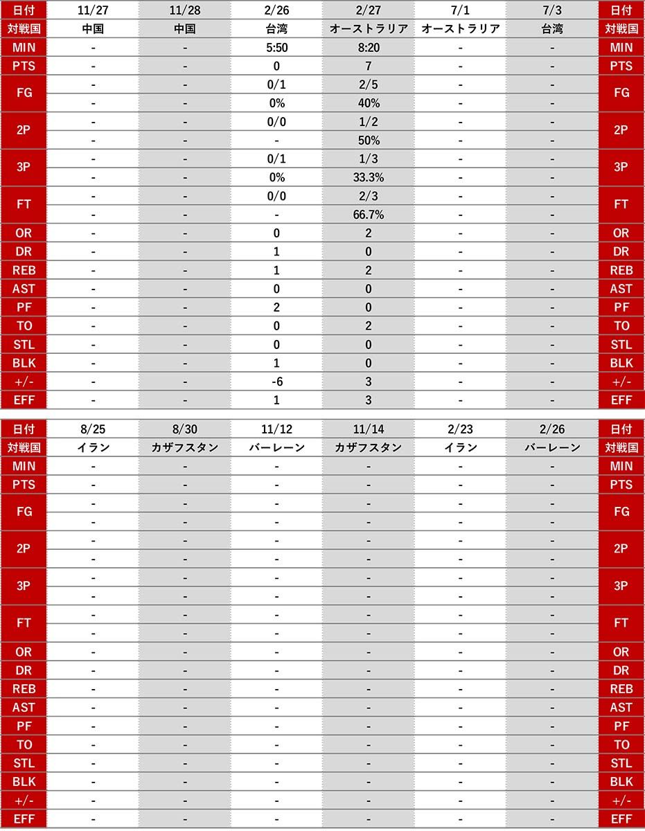 2020年 新人賞ベストファイブ■FIBAバスケットボールワールドカップ2023 アジア地区予選STATS