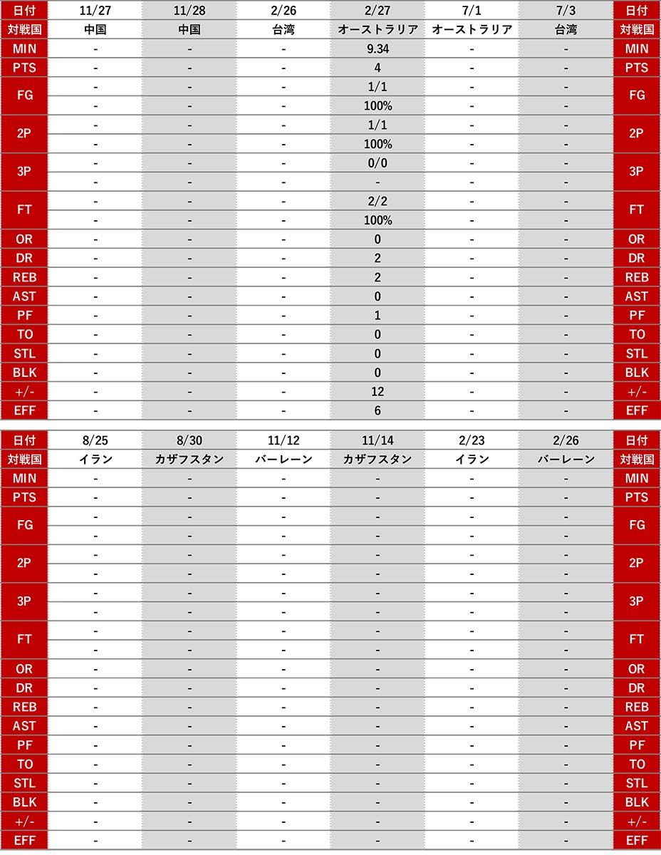 ■FIBAバスケットボールワールドカップ2023 アジア地区予選STATS
