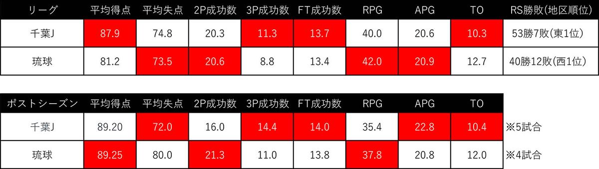千葉J×琉球のBリーグファイナル、数字から探る両チームの強み