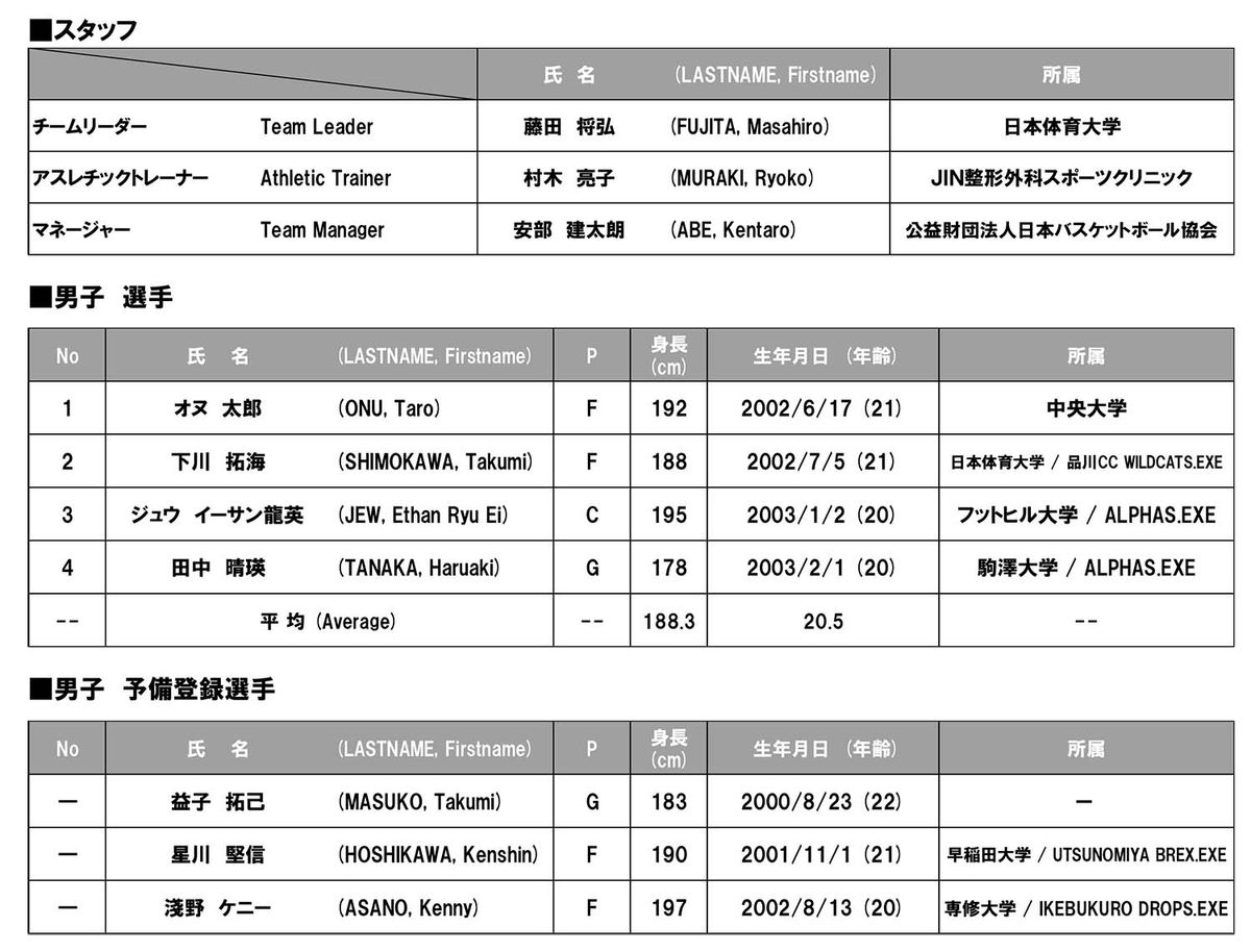 ※年齢・所属は2023年9月4日現在。 G:ガード、F:フォワード、C:センター