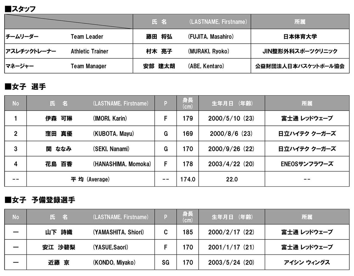 第19回アジア競技大会 3x3選手・予備登録選手・スタッフ・メンバーリスト