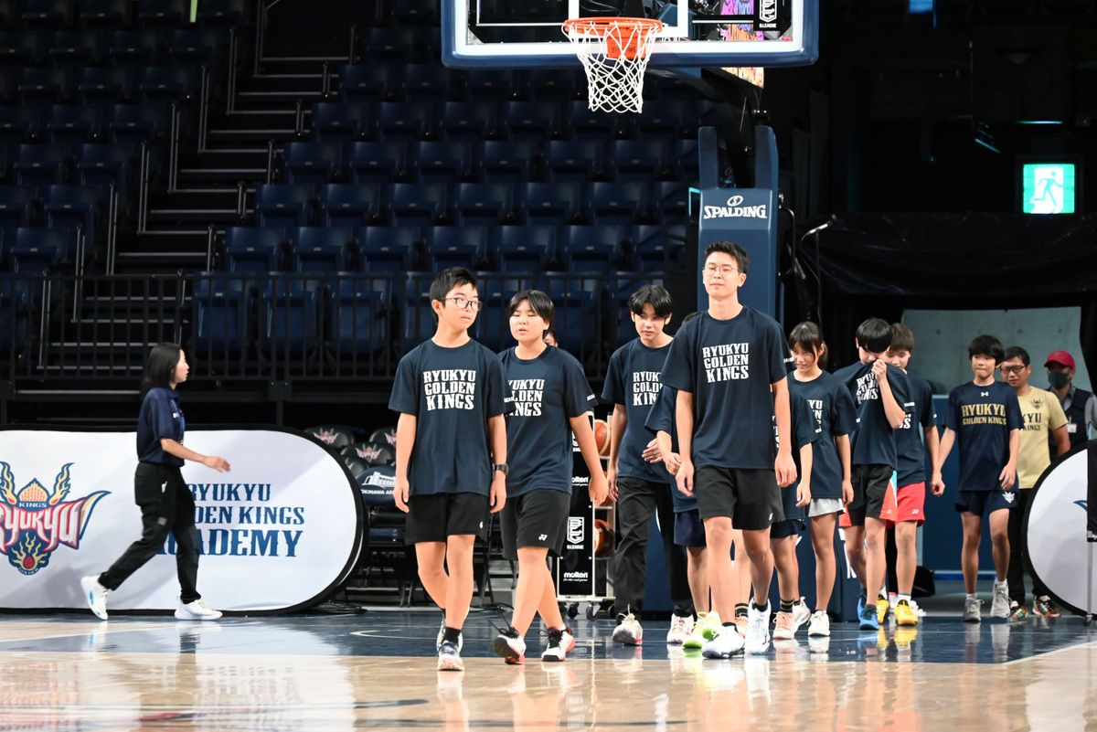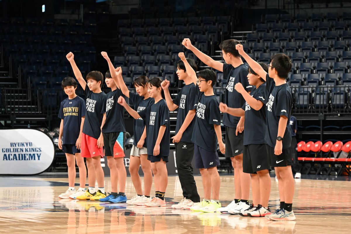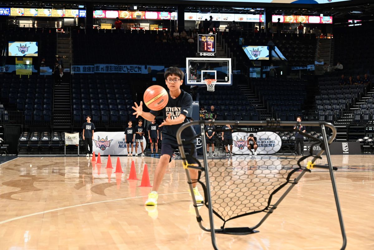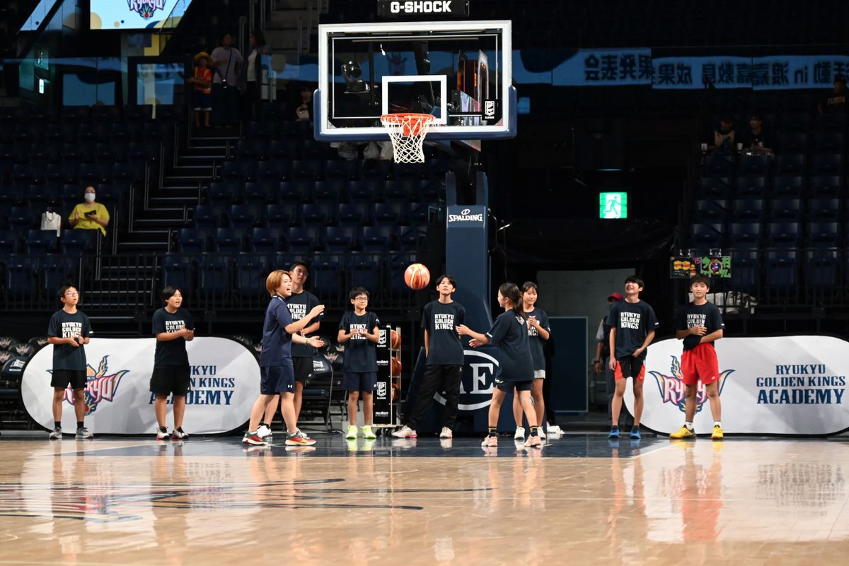 そうして迎えた今回、沖縄アリーナで行われる琉球ゴールデンキングスのホームゲーム(対富山グラウジーズ)の前に、渡嘉敷中の生徒9人が、オンラインバスケ部で学んだ技術を披露するため「スキルズチャレンジ」に臨んだ。学校の体育館とは異なるフロアの広さや高い天井、きらびやかな照明などにはじめのうちは圧倒されながらも、いざチャレンジが始まると、生徒たちは制限時間内にドリブルやパス、シュートなど決められた課題を次々とクリアしてゆき、練習の成果をみごとに発揮。何より、部活に励み、その成果を示す場があることの喜びを満面の笑顔が証明していた。