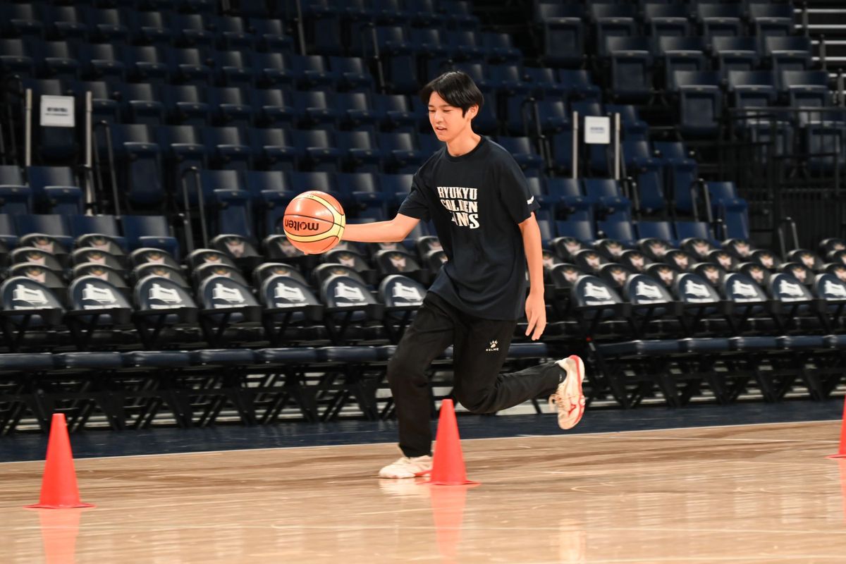 さる10月22日には渡嘉敷中と沖縄アリーナ サブアリーナをオンラインでつなぎ、元キングス主将で現キングスU18ヘッドコーチの与那嶺翼氏らが指導にあたる「オンラインバスケ部」でドリブル・パス・シュートの基本技術の練習を実施、その模様が公開された。