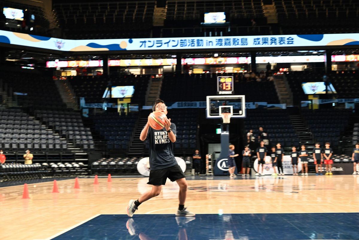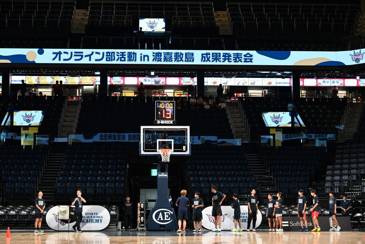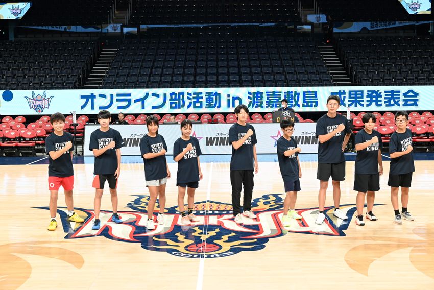 10月28日、沖縄アリーナで「オンライン部活動in渡嘉敷島 成果発表会」が行われた。沖縄県の離島・渡嘉敷村にある渡嘉敷中学校では現在、琉球ゴールデンキングスのキングスバスケットボールスクールから「オンラインバスケ部」による指導を受けているが、今回の発表会は、その成果を沖縄アリーナという大きな舞台で披露しようというもの。