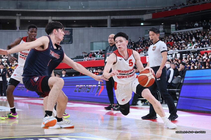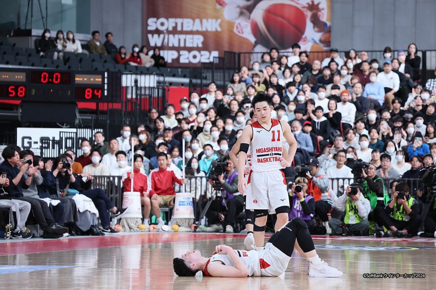12月28日、「SoftBank ウインターカップ2024令和6年度 第77回全国高等学校選手権大会」男子準決勝で、インターハイ王者の東山(京都①)とU18日清食品トップリーグ覇者の福岡大附大濠(福岡①)が対戦。2Q31-16としてリードを作った福岡大附大濠は後半リードを広げて84-58で勝利。2年連続13回目の決勝進出を決めた。