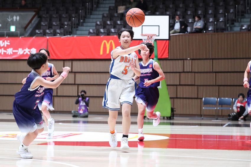 桜丘は4Q序盤、#1吉﨑の3Pシュート、#8谷口のシュートで47-37と2桁差に。さらに#1吉﨑が3ポイントプレー、#6木村帆の3Pシュートでスコアを伸ばす。一方、ドリームキッズは#7新田が3Pシュート、ロング2Pシュートを射抜くなど得点源になったが、流れを引き寄せるには至らず。桜丘が61-45で大会2勝目を挙げた
