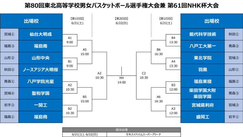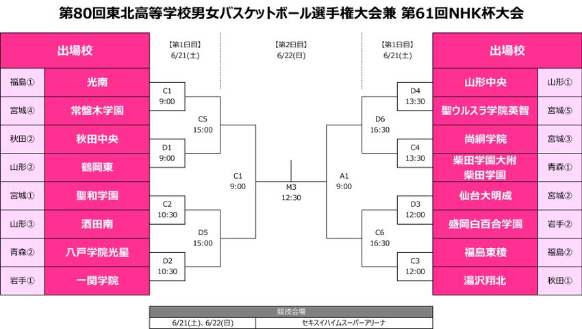 『第80回東北高等学校男女バスケットボール選手権大会兼 第61回NHK杯大会』特設ページ(日程・出場校・トーナメント表)