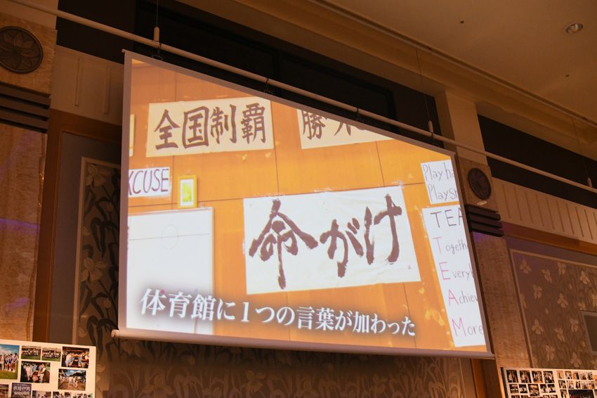 スクリーンには井上コーチの軌跡を追う特別映像が流された 偉大な背中を追い続ける教え子たち。現在トヨタ自動車でヘッドコーチを務める大神雄子氏もその一人だ。