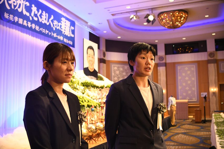現在の桜花学園を率いる白コーチと佐藤Aコーチ 「たくさんの方が参列してくださり、改めて先生の偉大さを肌で感じました。先生はたくさんの方から応援され、愛される指導者だったなと。先生への尊敬や、感謝の気持ちがより一層強まりました」