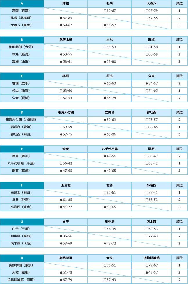 岩手全中 男子予選リーグ試合結果