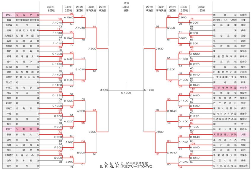 ■会場:東京体育館(A,B,C,D,Mコート / 東京都渋谷区千駄ケ谷1-17-1)、京王アリーナTOKYO(E,F,G,Hコート / 東京都調布市西町290-11)