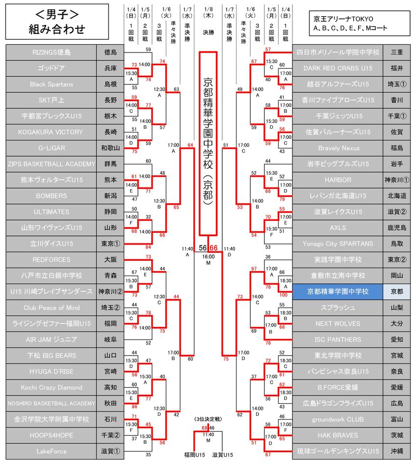 | 【1回戦】1月4日(日)/Fコート/14:00~ |