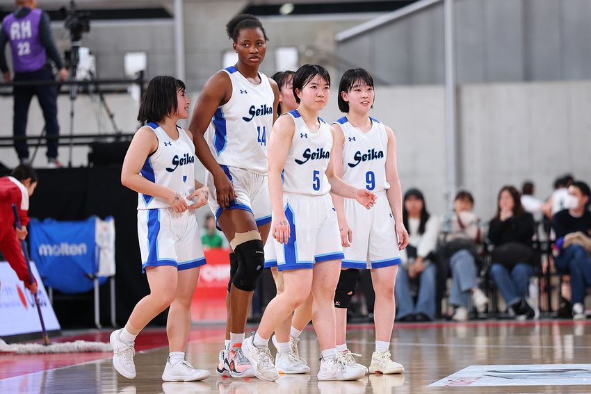 最も注目されるのは、Cコート第1試合(9:30〜)で行われるインターハイ3位・精華女(福岡①)と4連覇を目指す京都精華学園(京都①※インターハイはベスト8)の戦いだろう。U18日清食品トップリーグの対戦では、優勝した京都精華学園が69-49で勝利。この試合では、精華女の#44アキンデーレ タイウォ・イダヤットが10得点11リバウンド、もう一人の留学生#42ブバ アイシャ エジネが11得点13リバウンドに抑えられている。とりわけ#44イダヤットは今大会、2回戦で46得点18リバウンド、3回戦で17得点24リバウンドと活躍を見せており、京都精華学園に対してやり返したいという思いも強いはずだ。もちろん京都精華学園にも#18オディア カウェル リッツ、#15ンガルラ ムクナ リヤという強力なインサイドがいる。どんな攻防が繰り広げられるか、バックコート陣はどんな活躍を見せるか、注目したい。