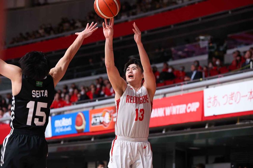 続いて行われるのは男子3回戦8試合。最も興味深いのはDコート第2試合(11:10〜)で行われる福岡大附大濠(福岡②)対開志国際(新潟①)。ディフェンディングチャンピオンの大濠はエースの#14本田蕗以をはじめ得点力ある選手が揃うが、開志国際もエース#13高橋歩路をはじめ多くのスコアラーが揃う。果たして、どちらが主導権を握るだろうか。