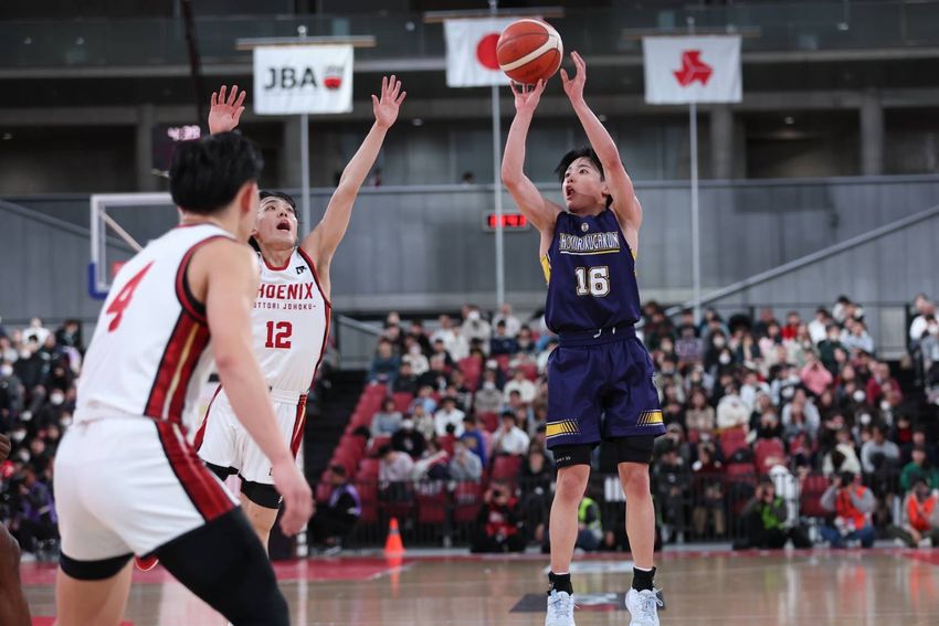 12月27日、「SoftBank ウインターカップ2025 令和7年度第78回全国高等学校選手権大会」男子準々決勝でインターハイ王者の鳥取城北(鳥取①)と同ベスト8の北陸学院(石川)が対戦。鳥取城北が22点のリードを作って迎えた3Q、北陸学院が好ディフェンスから挽回。4Qに入ってもジリジリと差を詰めると終了間際に2点差まで迫ったが、鳥取城北が65-61で逃げ切り。2年連続2度目の準決勝進出を決めた。