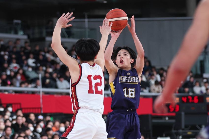 鳥取城北は#7豊村がチームトップの15得点。さらに#12福元、#28アズカ、#15大田がいずれも12得点をマークした。一方、北陸学院は#16小笠原が3Pシュート8本を決めて32得点とけん引。#77神保も12得点した。