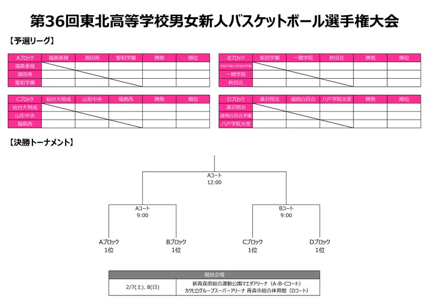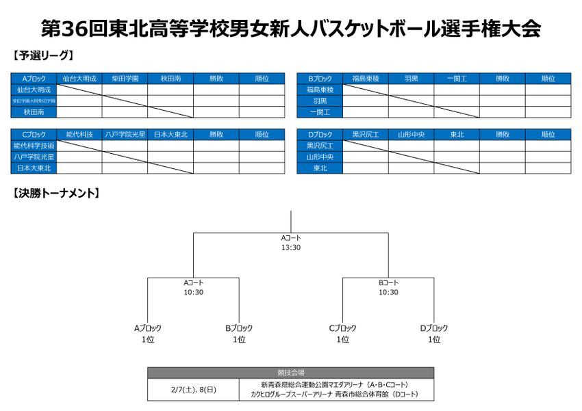 『第36回東北高等学校男女新人バスケットボール選手権大会』特設ページ(日程・出場校・トーナメント表)