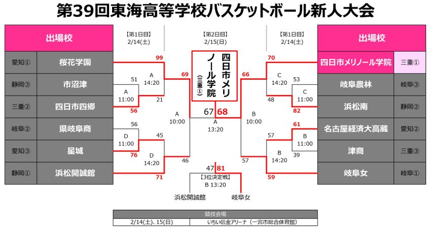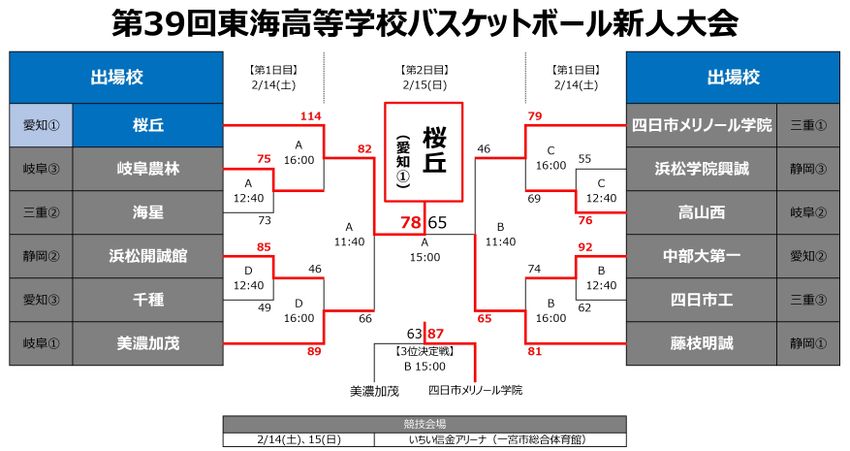 『第39回東海高等学校バスケットボール新人大会』特設ページ(日程・出場校・トーナメント表)