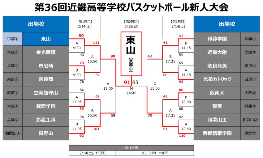 『第36回近畿高等学校バスケットボール新人大会』特設ページ(日程・出場校・トーナメント表)