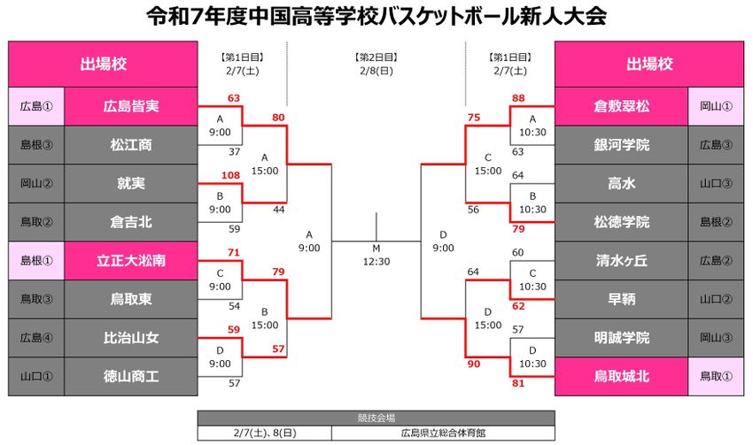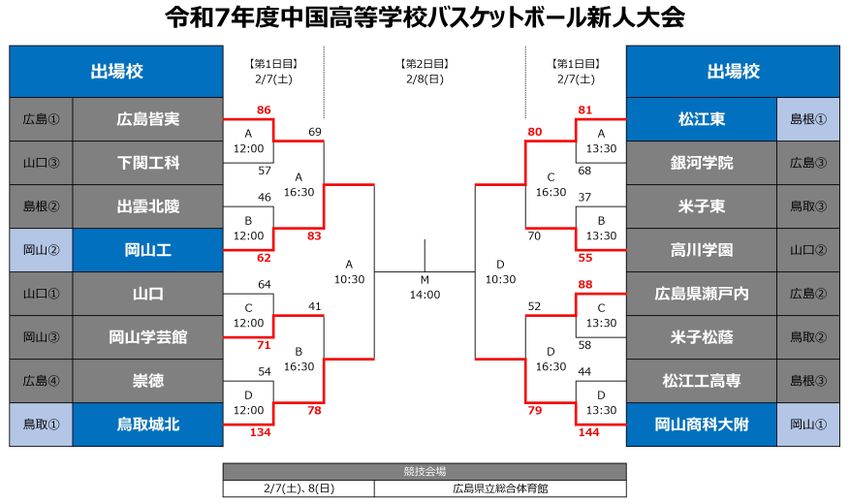 『令和7年度中国高等学校バスケットボール新人大会』特設ページ(日程・出場校・トーナメント表)