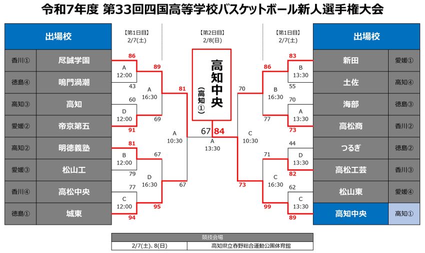 『令和7年度 第33回四国高等学校バスケットボール新人選手権大会』特設ページ(日程・出場校・トーナメント表)