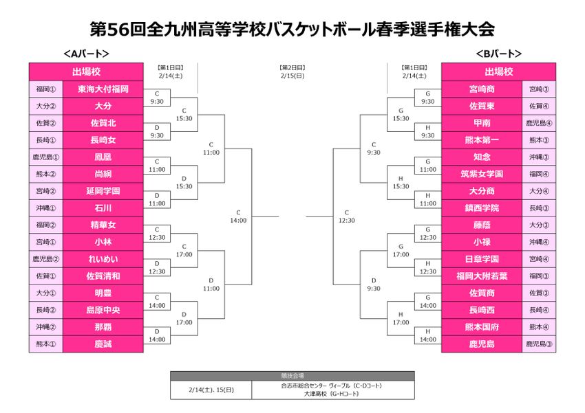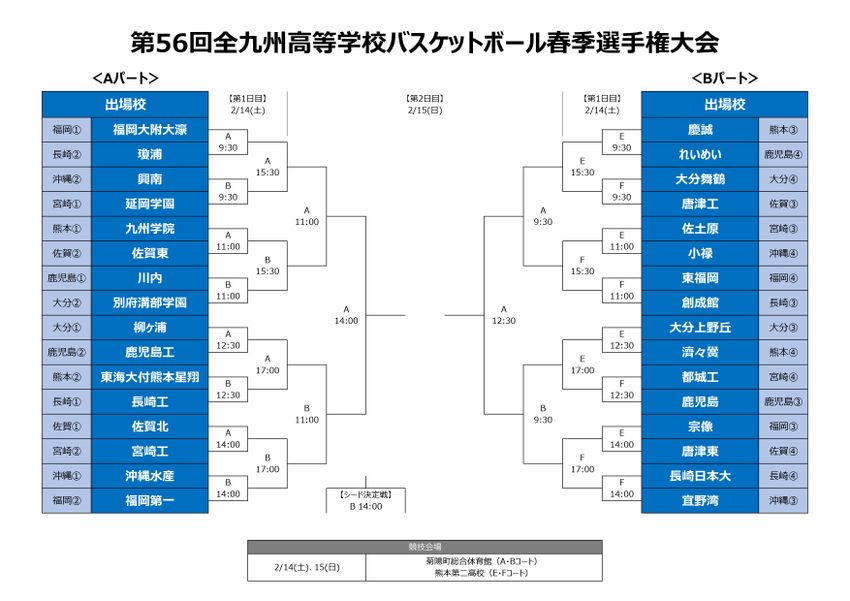 『第56回全九州高等学校バスケットボール春季選手権大会』特設ページ(日程・出場校・トーナメント表)