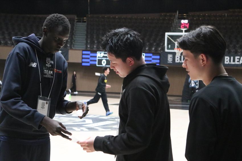 B.LEAGUEとしてはU15、U18選手育成にあたっての理念、求める選手像がある。そのキーワードとなるのが、「BREAK THE BORDER」(=常識や限界を超えるという意味)だ。実現に当たって、1:アスリートマインド(トップアスリートに求められる力)、2:グローバルマインド(グローバルに生きる力)、3:ビジネスマインド (社会で戦い抜く力)を醸成することを目標にしており、今回はオフコートでの海外の選手との交流を通じて、グローバルコミュニケーションの実践を図る「2:グローバルマインド」を磨く場となった。