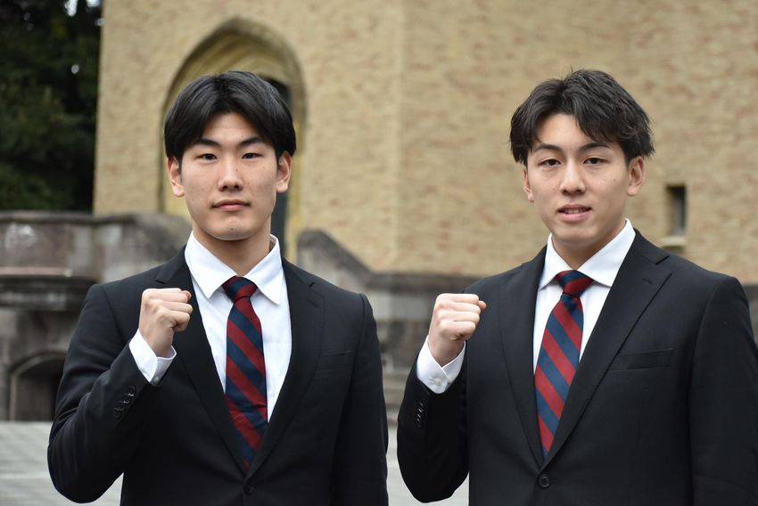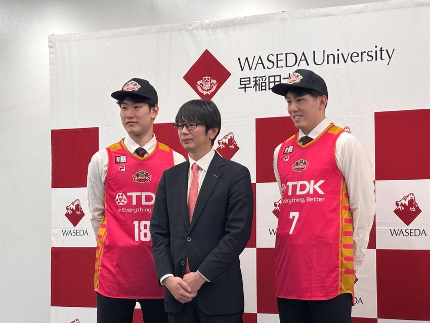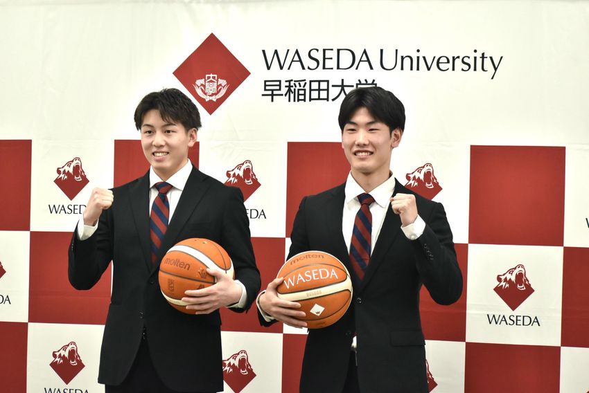 2月17日、早稲田大にて「B.LEAGUE DRAFT 2026」で秋田ノーザンハピネッツから指名された岩屋頼と堀田尚秀の指名挨拶会見が実施された。