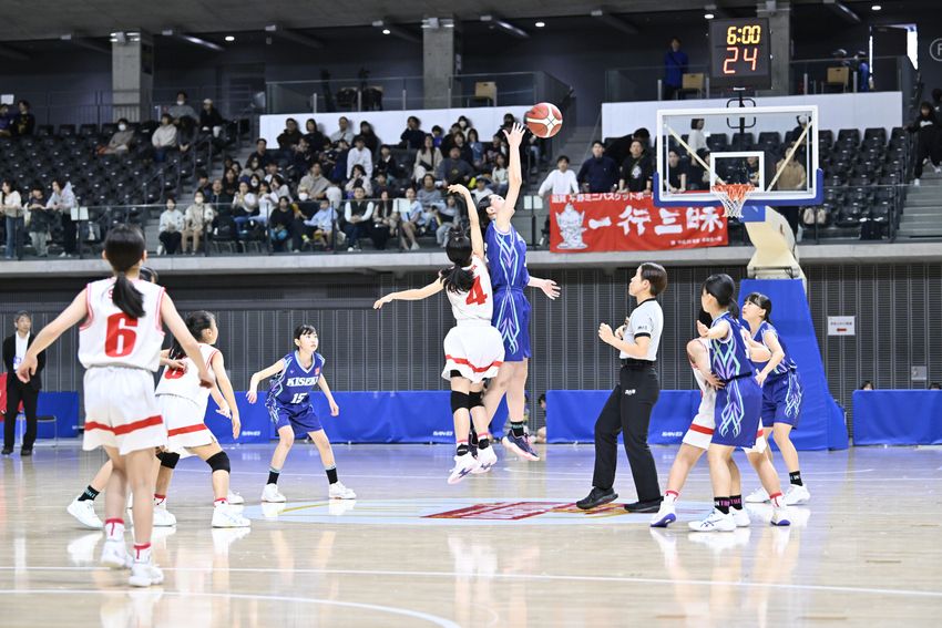 3月28日、「第57回マクドナルド全国ミニバスケットボール大会」が京王アリーナTOKYOで開幕した。すでに昨年から導入された3Pシュートに加え、今大会ではリングの高さが大人と同じ「305cm」、ボールも「6号球」へと変更される特別競技ルールが適用されている。優勝や順位付けを行わない交歓大会という、選手たちが伸び伸びとプレーできる環境下で、楽しそうにコートを駆け回っていたのが糸満市立糸満南小(沖縄)だ。
