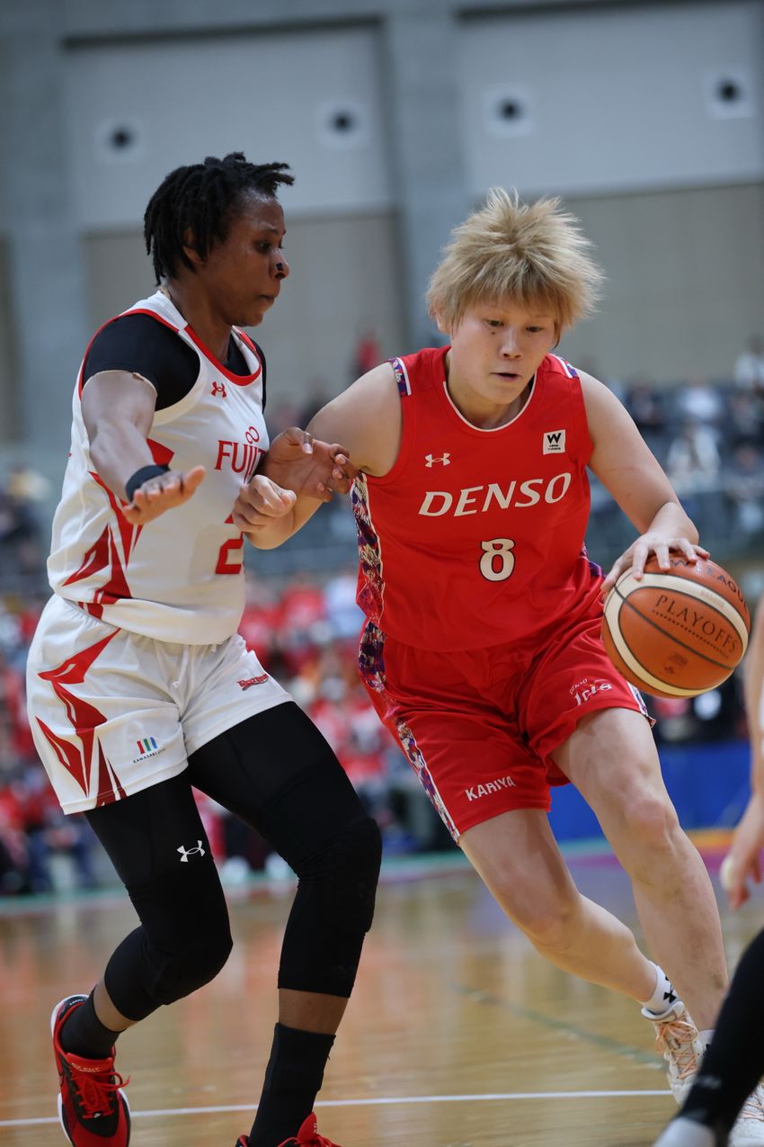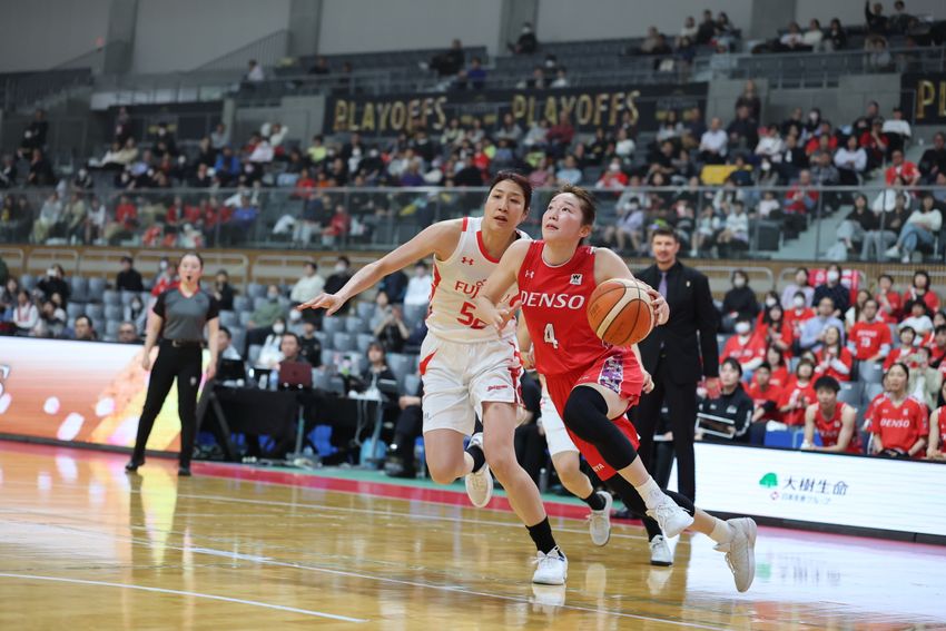 デンソーは全員で粘り強く守り、リーグトップ平均9.93本のスティールでボールを奪う。オフェンスは髙田のポストプレーを中心に外は木村、川井、笠置などと内外どこからでも点が取れる隙がない布陣。総合力で試合を優位に進め、悲願の初制覇をつかみたい。髙田は前日会見で「けがでプレーできない選手たちの思いも背負って、コートで全員で戦っていきたいと思います」と力を込めた。