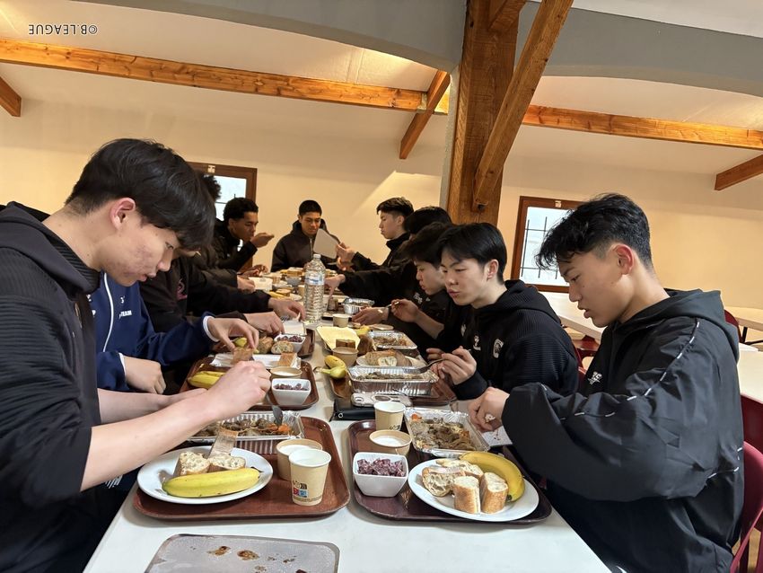 チームでの食事シーン、体を作るたんぱく質、エネルギーとなる糖質など試合に向けて何を摂るべきかといった判断も大事な要素となる