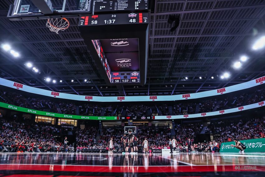 成長を支える要因として紹介したのが、各地で産声を上げている「新アリーナ」の存在である。B1ではアルバルク東京(TOYOTA ARENA TOKYO ※新設)や名古屋ダイヤモンドドルフィンズ(IGアリーナ ※新設)、B2でも神戸ストークス(GLION ARENA KOBE ※新設)や福島ファイヤーボンズ(宝来屋 ボンズアリーナ ※大規模改修)といったクラブが、より収容人数の多い、あるいは演出力の高い拠点での興行を本格化させている。