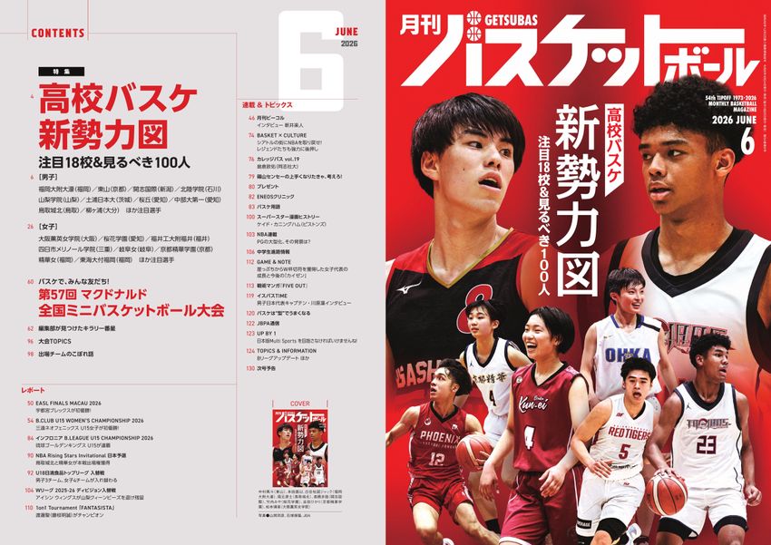 2026年度を迎え、いよいよ高校バスケの新シーズンがスタートした。今月号では、昨冬のウインターカップ覇者・福岡大附大濠と大阪薫英女学院を筆頭に、新シーズンの注目18校と、全国各地の見るべき高校生100人を一挙紹介する!