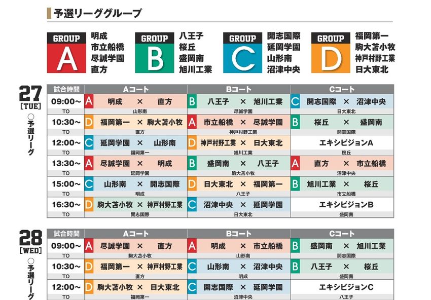 3月27~29日の3日間、日本工学院八王子専門学校(東京)で開催される『KAZU CUP 2018』の予選リーグ対戦表とスケジュールは以下のとおり。入場は無料なので、16チームが参加する全国レベルの戦いをぜひ見に行こう!