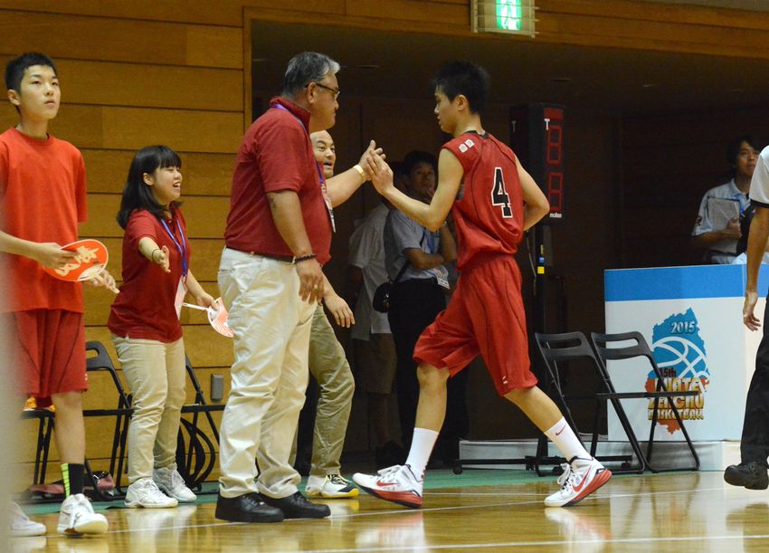 父親はミニバスの指導者でもある白子中の笹山貴章Aコーチ、兄は昨年のインカレMVPの笹山貴哉(筑波大→三菱電機名古屋)という、バスケ一家に生まれた笹山。185㎝の高さを持ちながら、周囲を生かすアシスト、ここぞという場面での得点力が光る。また声を出してチームメイトともコミュニケーションをよく取っており、チームの絶対的リーダーだ。 ただ、予選リーグを終えて父の笹山貴章Aコーチに彼のことを伺うと、「まだまだ勝ちたいという気持ちを背負いすぎているように思います。もう少し、試合を楽しむ、良い意味での余裕があるといい」と言う。 笹山の“勝ちたい気持ち”のわけは、2年半前の全国ミニバス大会までさかのぼる。小学6年生のときに桜島ミニバスケットボールクラブの一員として大会に出場した笹山だったが、1試合目でいきなり千葉の村上イーグレッツBoy'sに42−43で敗戦。予選リーグ1勝1敗で、決勝トーナメントに出場することができなかったのだ(村上イーグレッツBoy'sはその後優勝を果たした)。 「全ミニのときの、リベンジという気持ちもあるのでしょう」と笹山貴章Aコーチ。2年半前の、1点差の惜敗から満を持して全国の舞台に戻ってきただけに、おのずと力んでしまう部分もあったのだった。ただ、笹山貴章Aコーチは「(2試合目の)最後の方に、ようやく良い顔になってきました。明日はもっと、試合を楽しめるんじゃないかな」と言う。 決勝トーナメントでは、村上イーグレッツBoy'sのメンバーがいる八千代松陰や、鈴鹿F1カップ・倉敷カップ・西日本カップと対戦しているライバルの玉島北は、逆の山。すなわち、互いに決勝まで勝ち上がらなければ、対戦することはない。決して簡単な道のりではないが、笹山をはじめ白子のメンバーは、頂点だけを見据えて明日からの決勝トーナメントを戦う。 核となるリーダーが普段どおりの力を発揮できれば、チームもさらに強くなるはずだ。人一倍の“勝ちたい気持ち”を背負い、彼らがどんな戦いを見せるか注目したい。