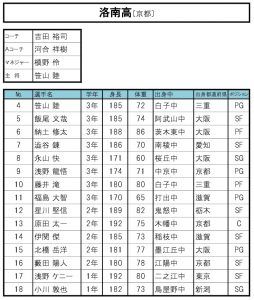 “能代カップ”出場チームエントリー情報④【洛南高/京都】