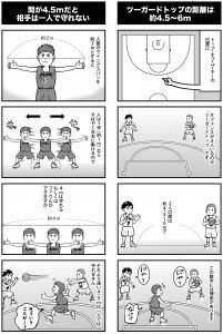 月刊バスケットボールで連載中の『まんが バスケットボール用語辞典』をウェブでも読めるように! 和製英語ではなく、正しい英語のニュアンスで理解していくと、より分かりやすくなる。今回は “2ガードトップ”について。