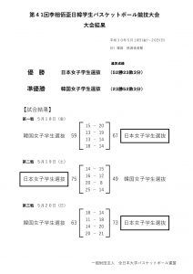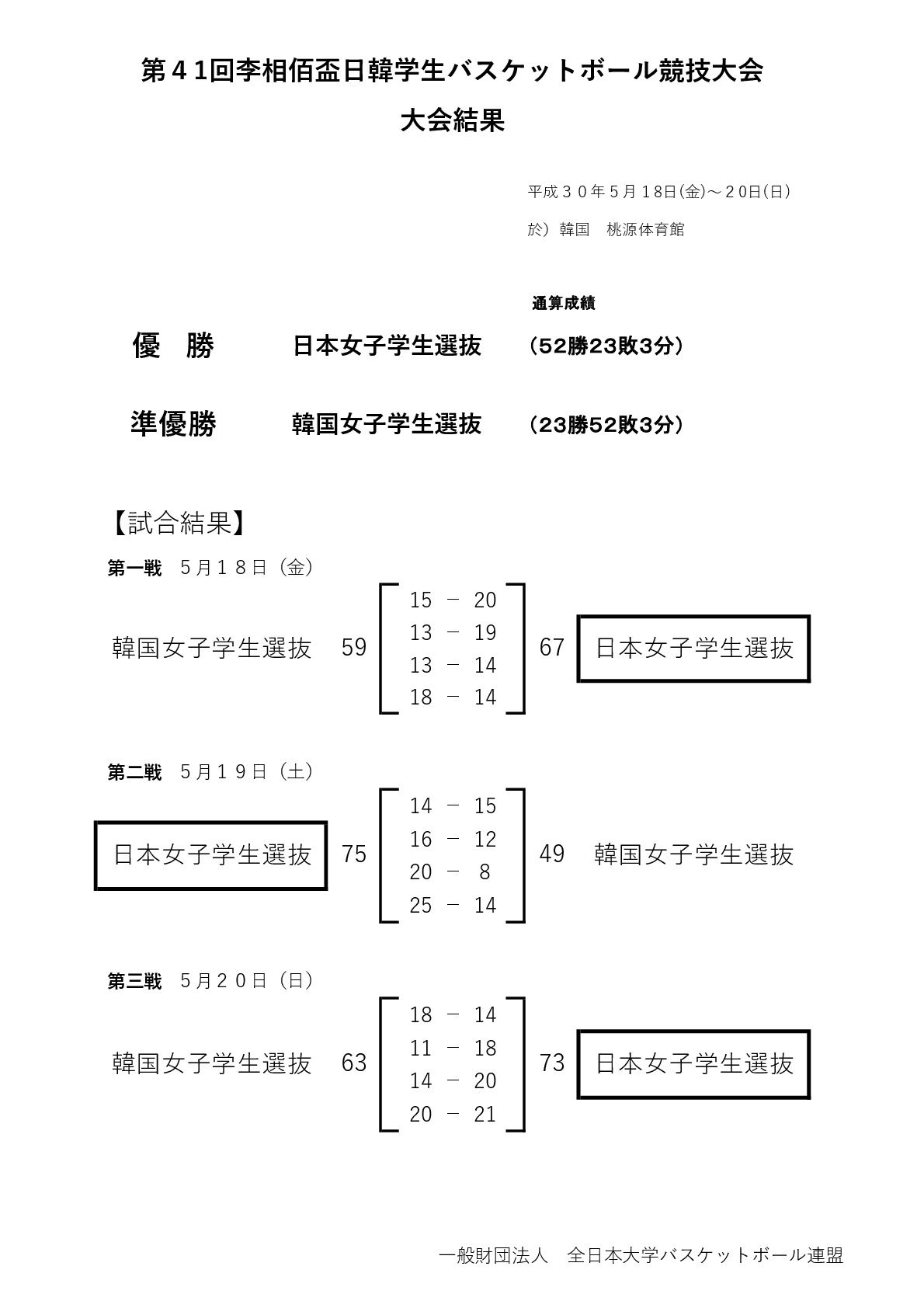 “第41回李相佰盃日韓学生バスケットボール競技大会”全試合結果