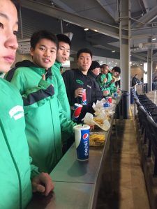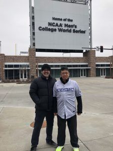 午後にはクレイトン大の野球観戦に行きました。ハンバーガーをかじりながら、大学生の迫力やアメリカ野球独特の雰囲気を楽しみました(^^) この日はとても寒く、気温はマイナス3℃でしたが、オマハの冬はとても寒くマイナス20℃まで下がるそうです。