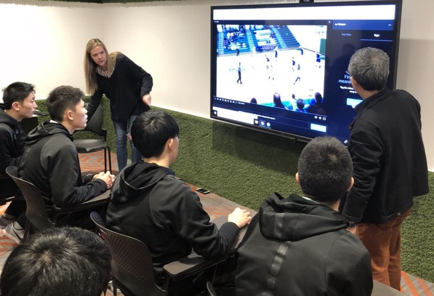 午後からは、hudlというスポーツの情報分析を行う会社を見学しました。その会社にゲームのビデオを送り、細かな内容の分析をしてもらう会社です。7年前にネブラスカ州大オマハ校の学生が立ち上げた会社ですが、今では世界進出をしています。